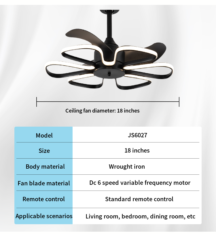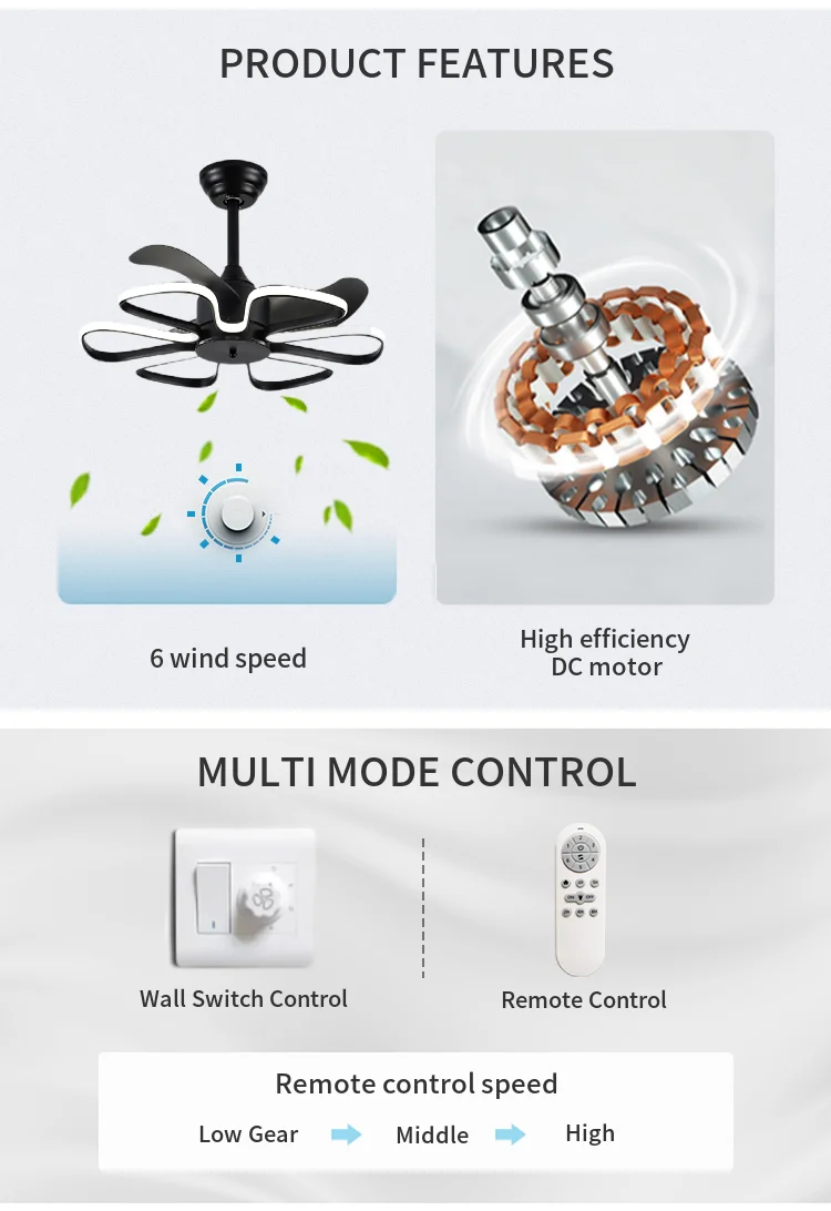| Feature | 3 color light、low noise、6 speed、remote control、natural wind、forward/reverse、timer function、energy conservation |