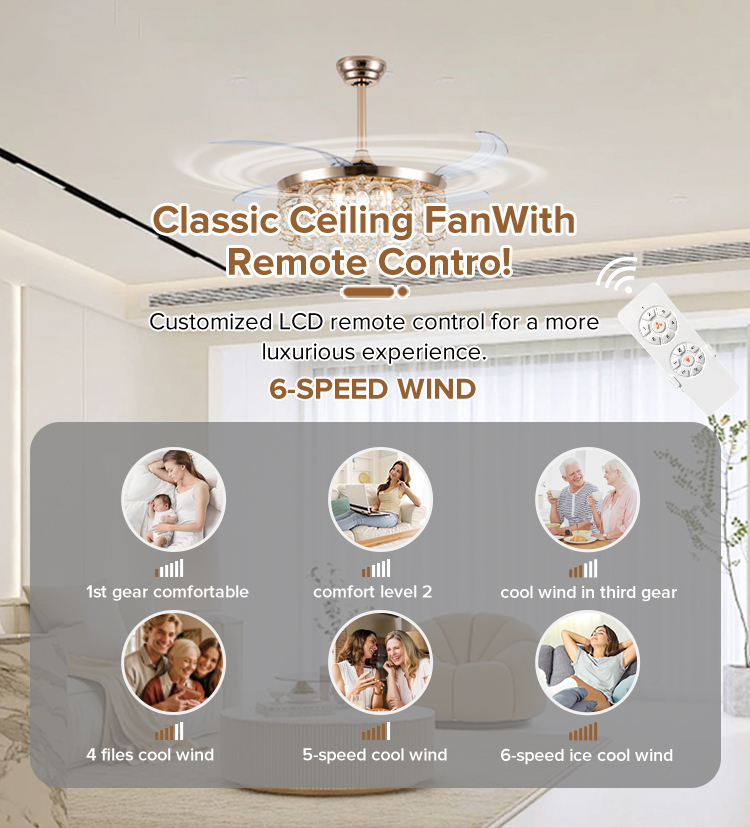 | Feature | 3 color light,low noise,6 speed,remote control,natural wind,forward/reverse,timer function,energy conservation |