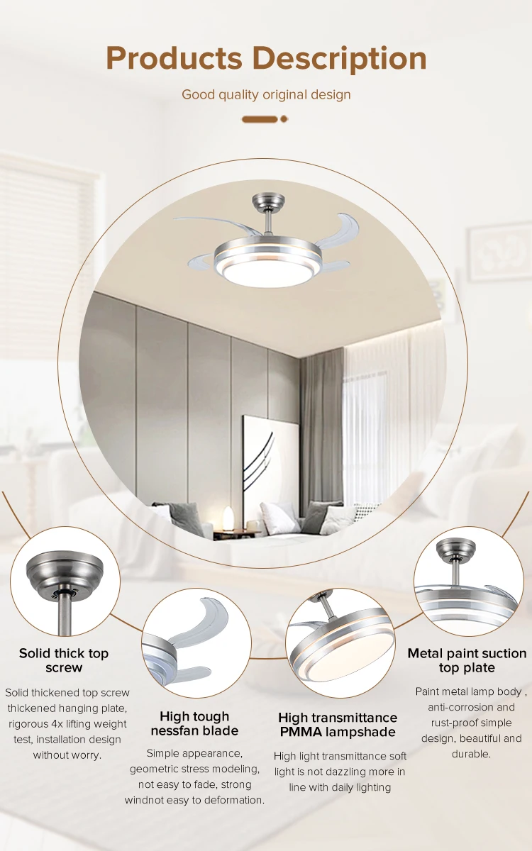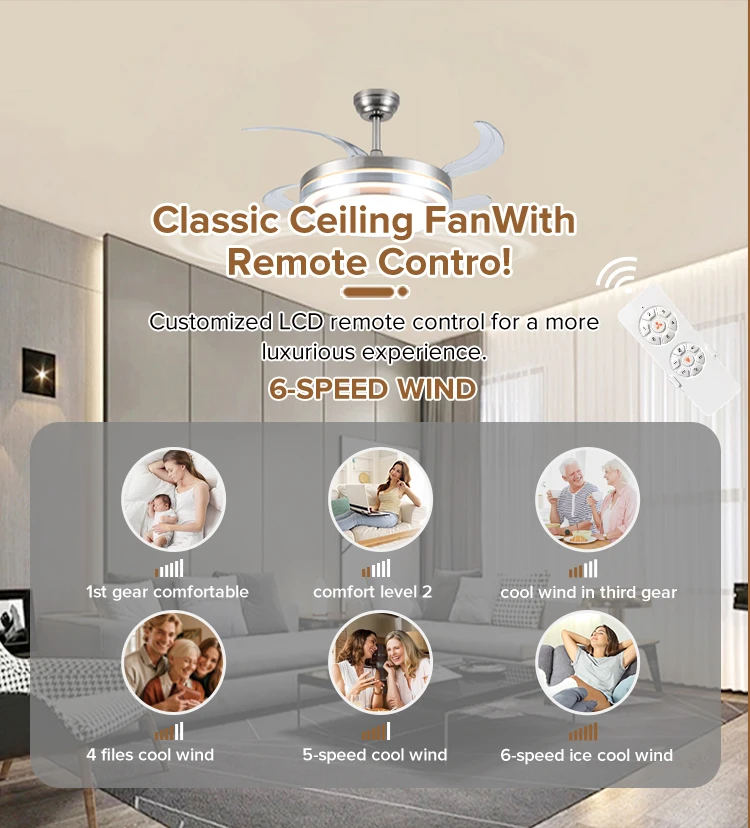 | Feature | 3 color light,low noise,6 speed,remote control,natural wind,forward/reverse,timer function,energy conservation |