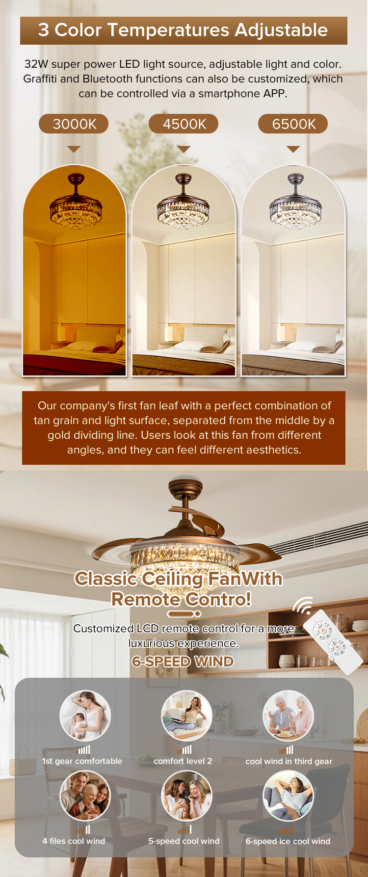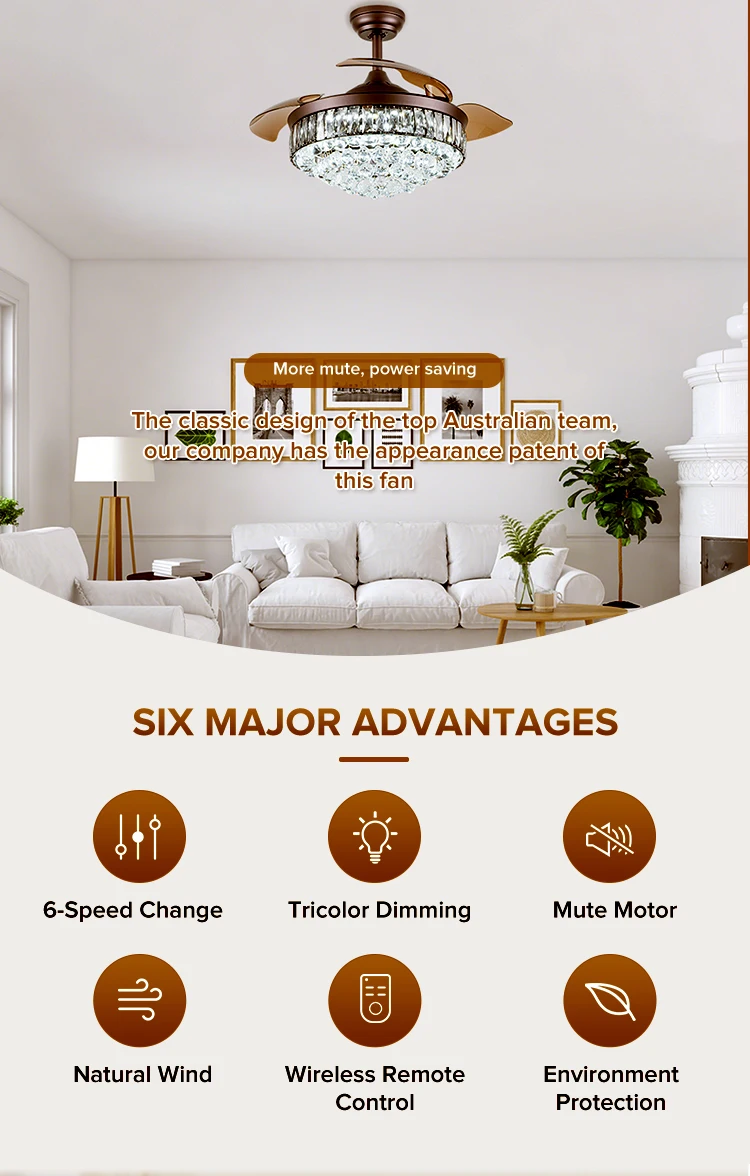 | Feature | 3 color light,low noise,6 speed,remote control,natural wind,forward/reverse,timer function,energy conservation |