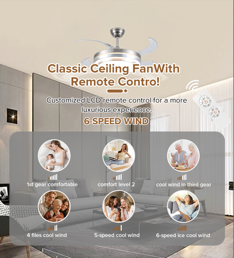 | Feature | 3 color light,low noise,6 speed,remote control,natural wind,forward/reverse,timer function,energy conservation |