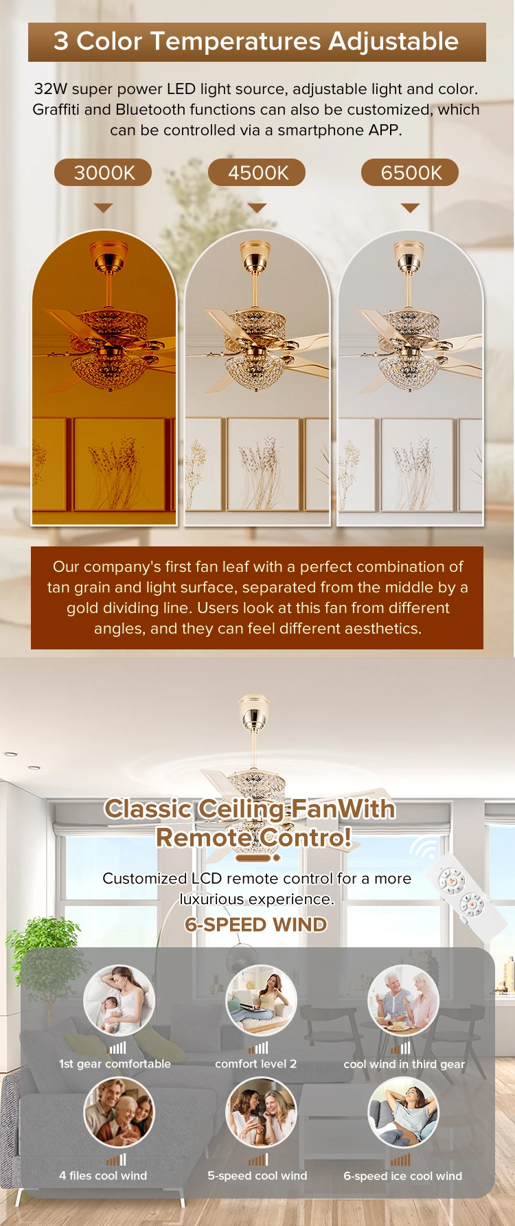 | Feature | 3 color light,low noise,6 speed,remote control,natural wind,forward/reverse,timer function,energy conservation |