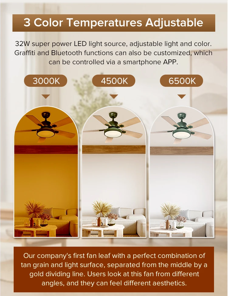 You are here: Home » Product Category » Traditional Fan Lamp » 52inch Original Wood Grain Fan Remote Control Low Noise Led Ceiling Fan Light