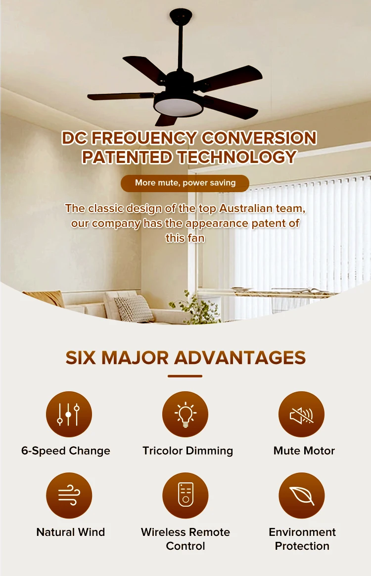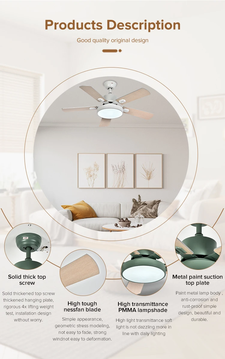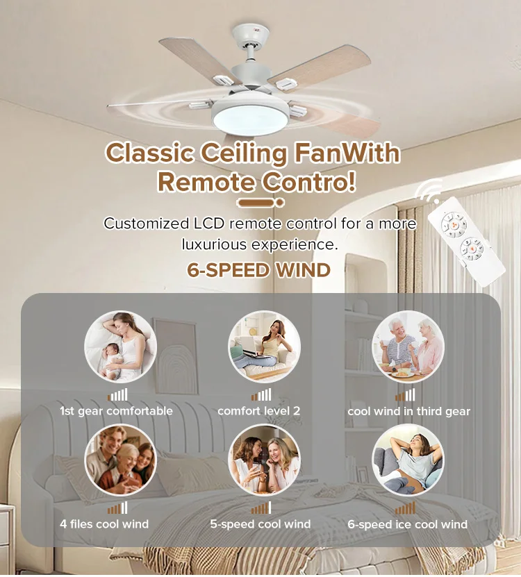 52inch Original Wood Grain Fan Remote Control Low Noise Led Ceiling Fan Light
