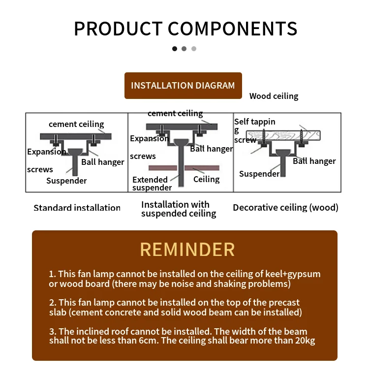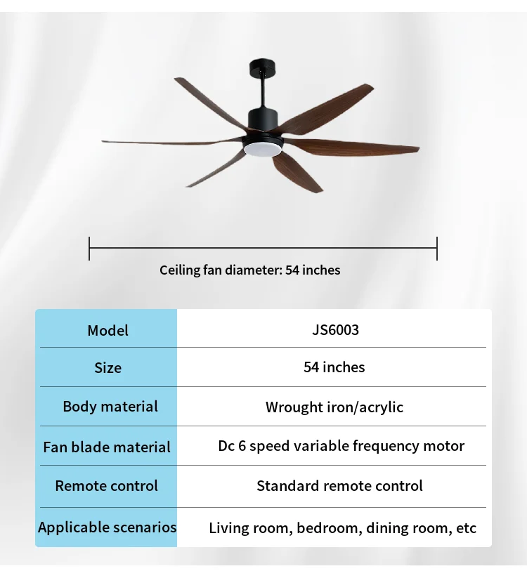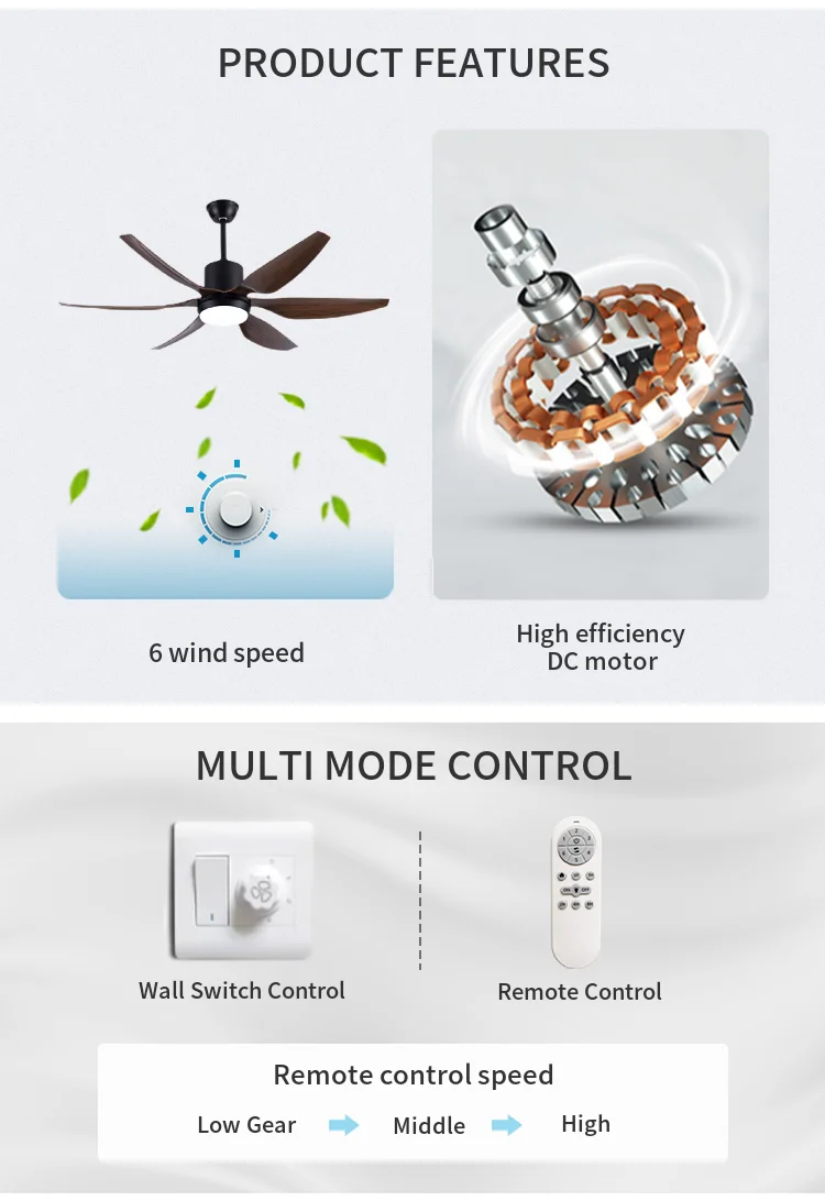 | Feature | 3 color light、low noise、6 speed、remote control、natural wind、forward/reverse、timer function、energy conservation |