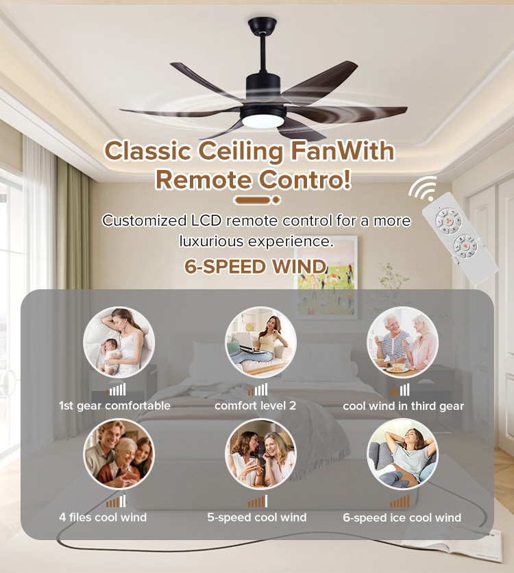 | Feature | 3 color light,low noise,6 speed,remote control,natural wind,forward/reverse,timer function,energy conservation |