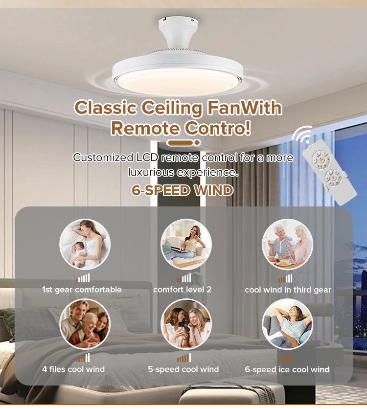 | Feature | 3 color light,low noise,6 speed,remote control,natural wind,forward/reverse,timer function,energy conservation |