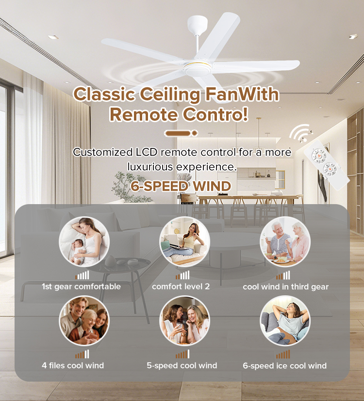 | Feature | 3 color light,low noise,6 speed,remote control,natural wind,forward/reverse,timer function,energy conservation |