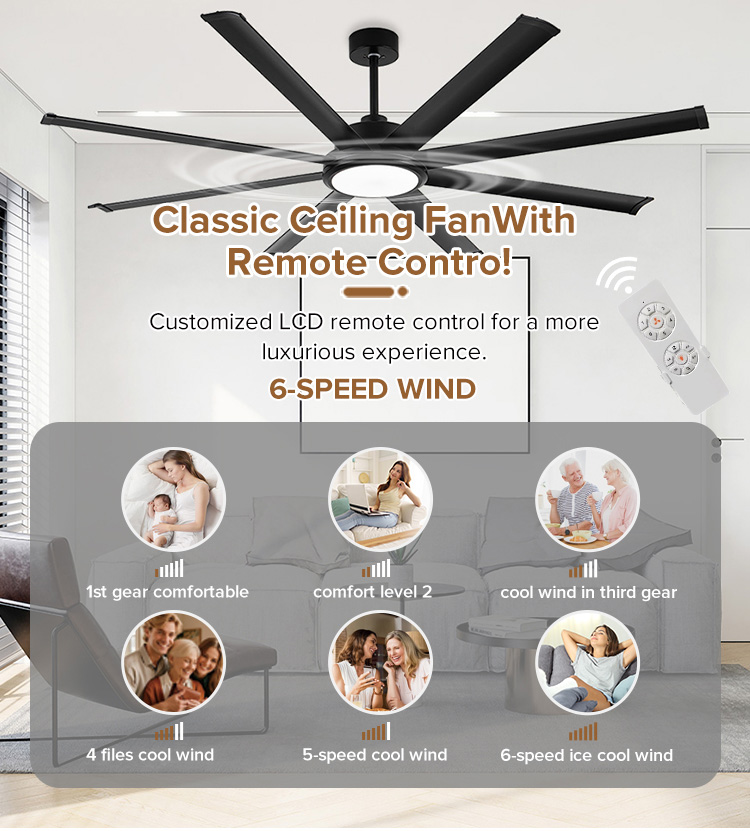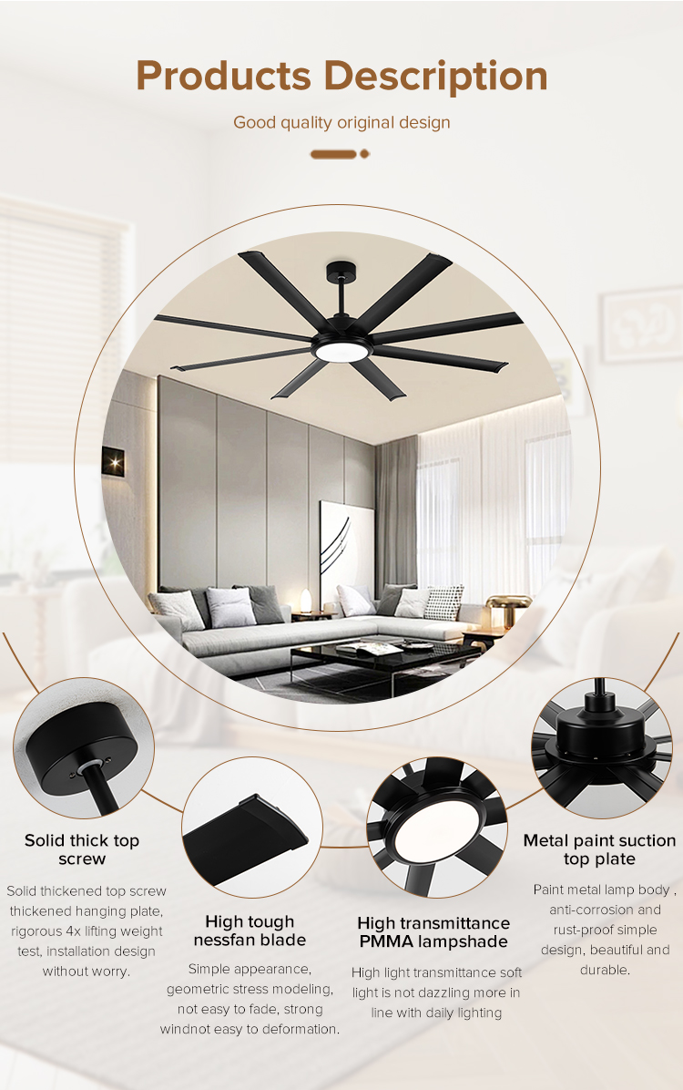 You are here: Home » Product Category » Traditional Fan Lamp » Contemporary extra Large Luxury Black 100 Inch Ceiling Fan bluetooth APP Celling Fan with Light