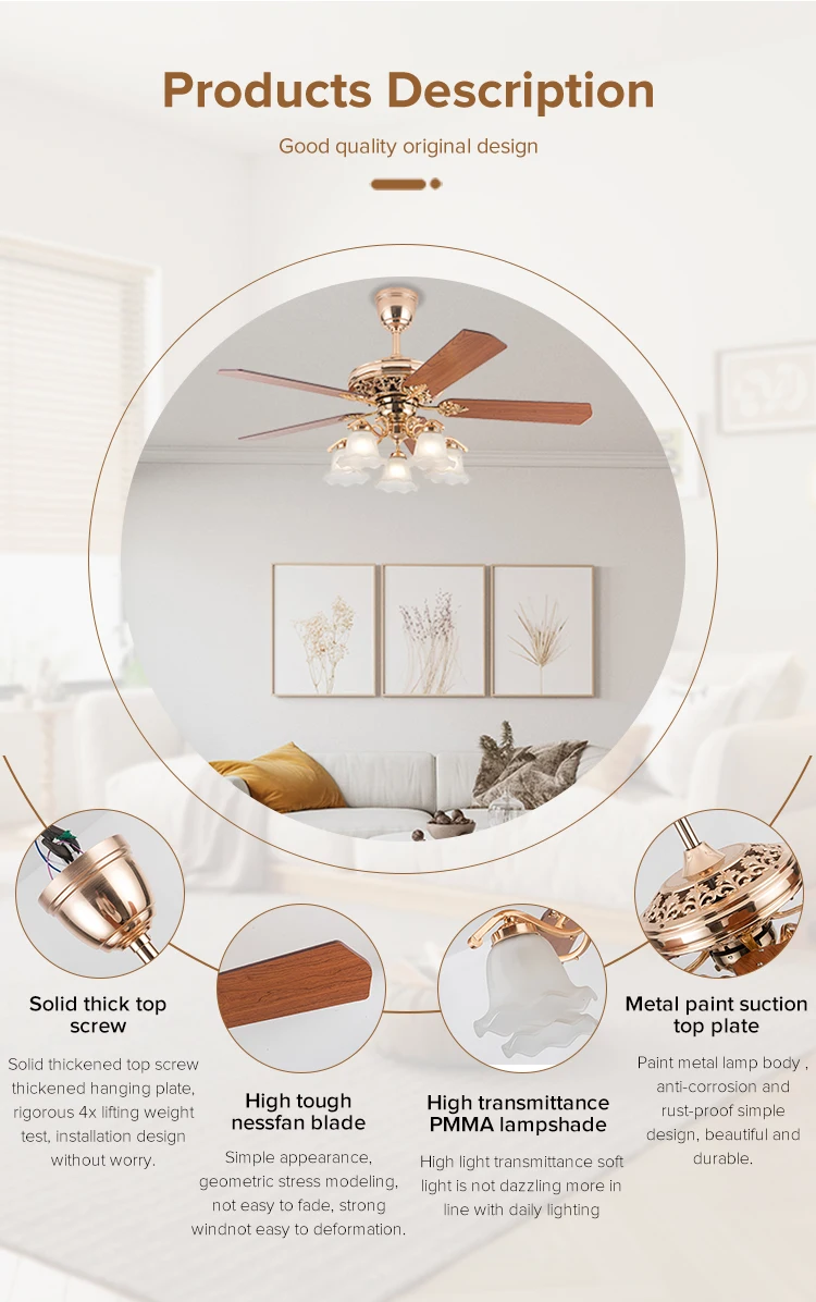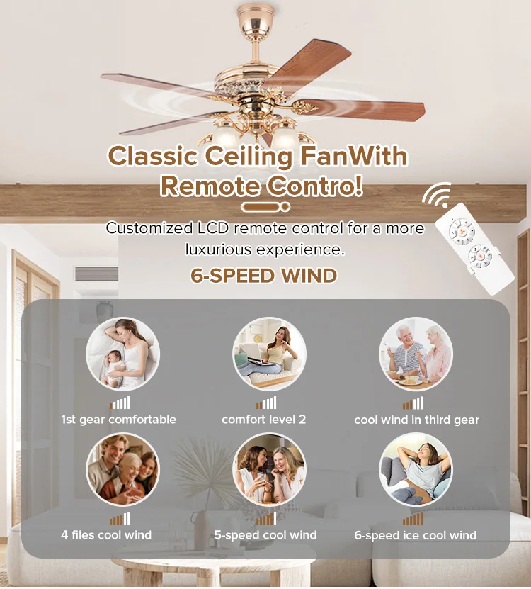 You are here: Home » Product Category » Traditional Fan Lamp » Decorative Luxury Remote Control Led Ceiliunique Fan 56 Inch 6 Speed Ceiling Lamp Light with Fan Cct