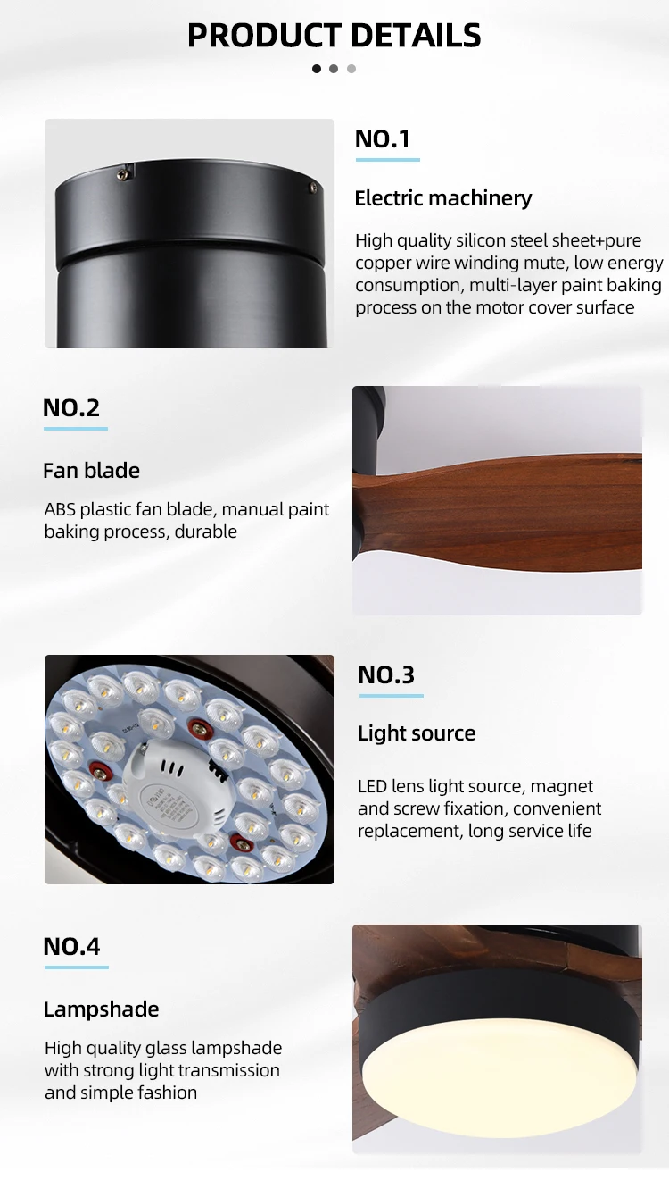 You are here: Home » Product Category » Traditional Fan Lamp » Decorative Mute 3 Blade Deluxe Solid Indoor Remote Control ABS Modern Ceiling Fan with Light