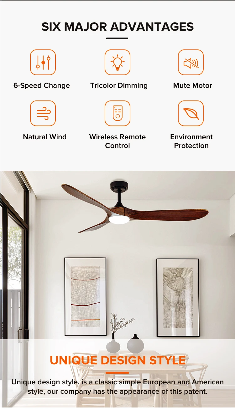 | Feature | 3 color light,low noise,6 speed,remote control,natural wind,forward/reverse,timer function,energy conservation |