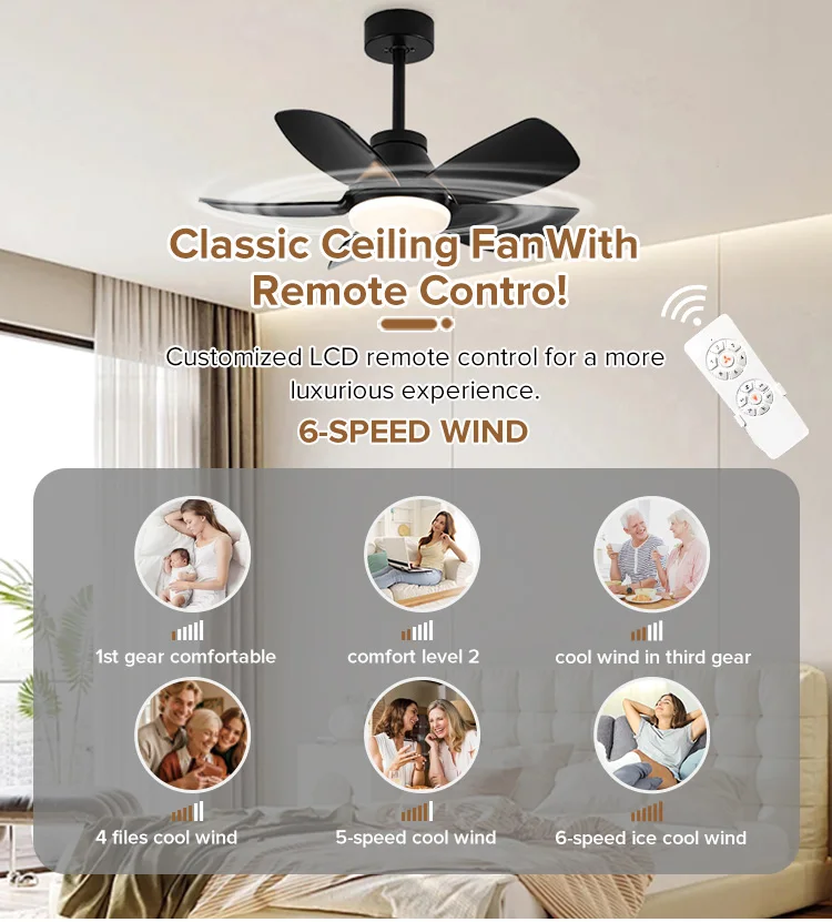 High Quality 36inch 6speed Gloss Black Remote Control Led Ceiling Fans With Light for Dining