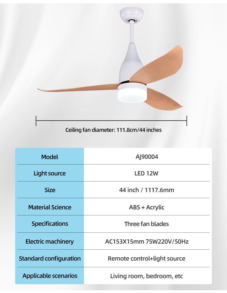 High Quality Decorative 44inch Bedroom Ceiling Fan with Light and Remote Control