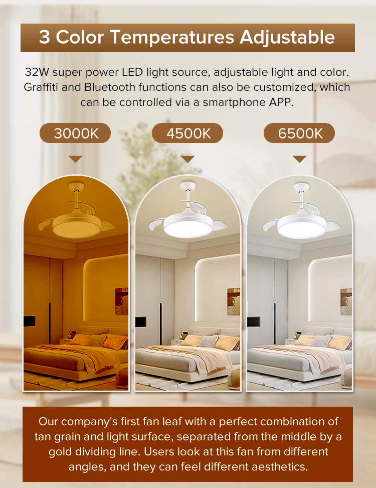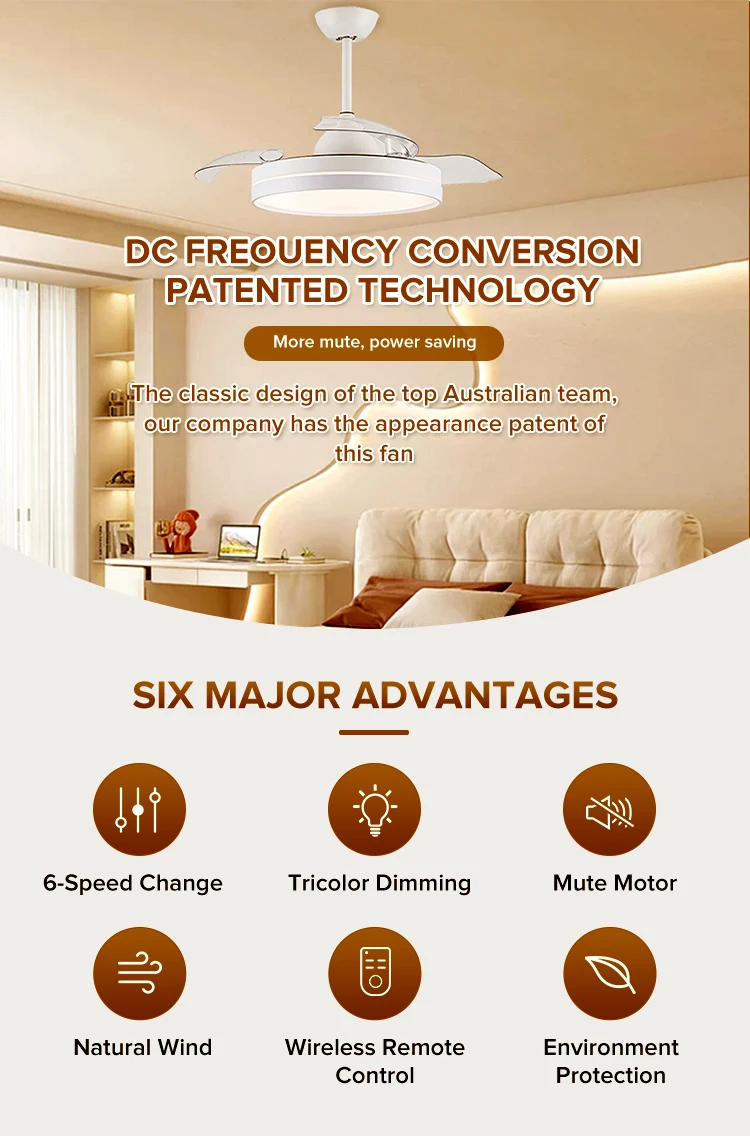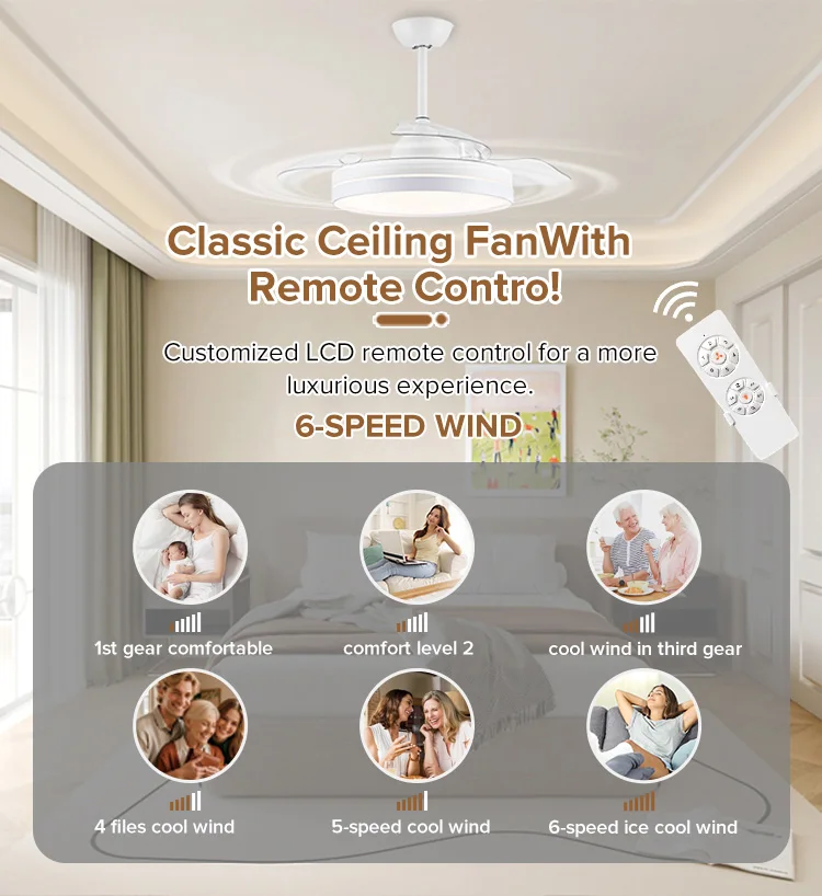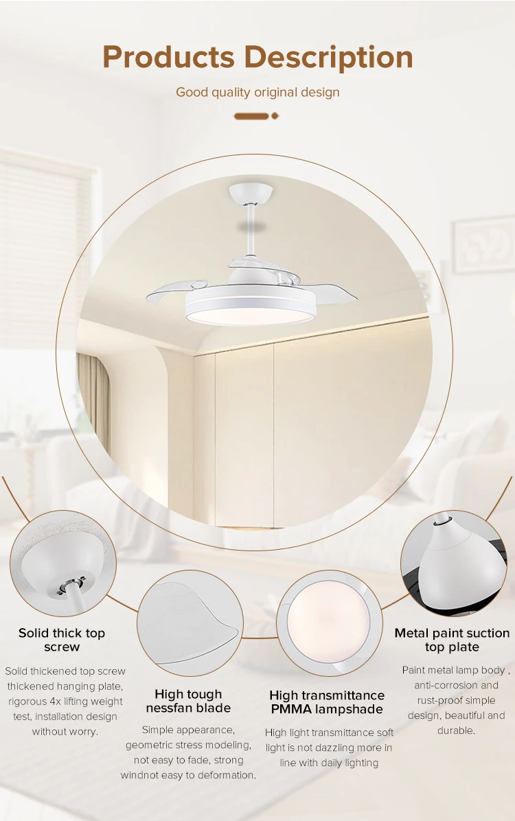 High Quality Indoor Smart Regularly Timeable White Ceiling Retractable Fans with Light Wifi