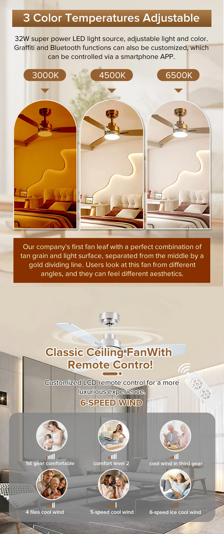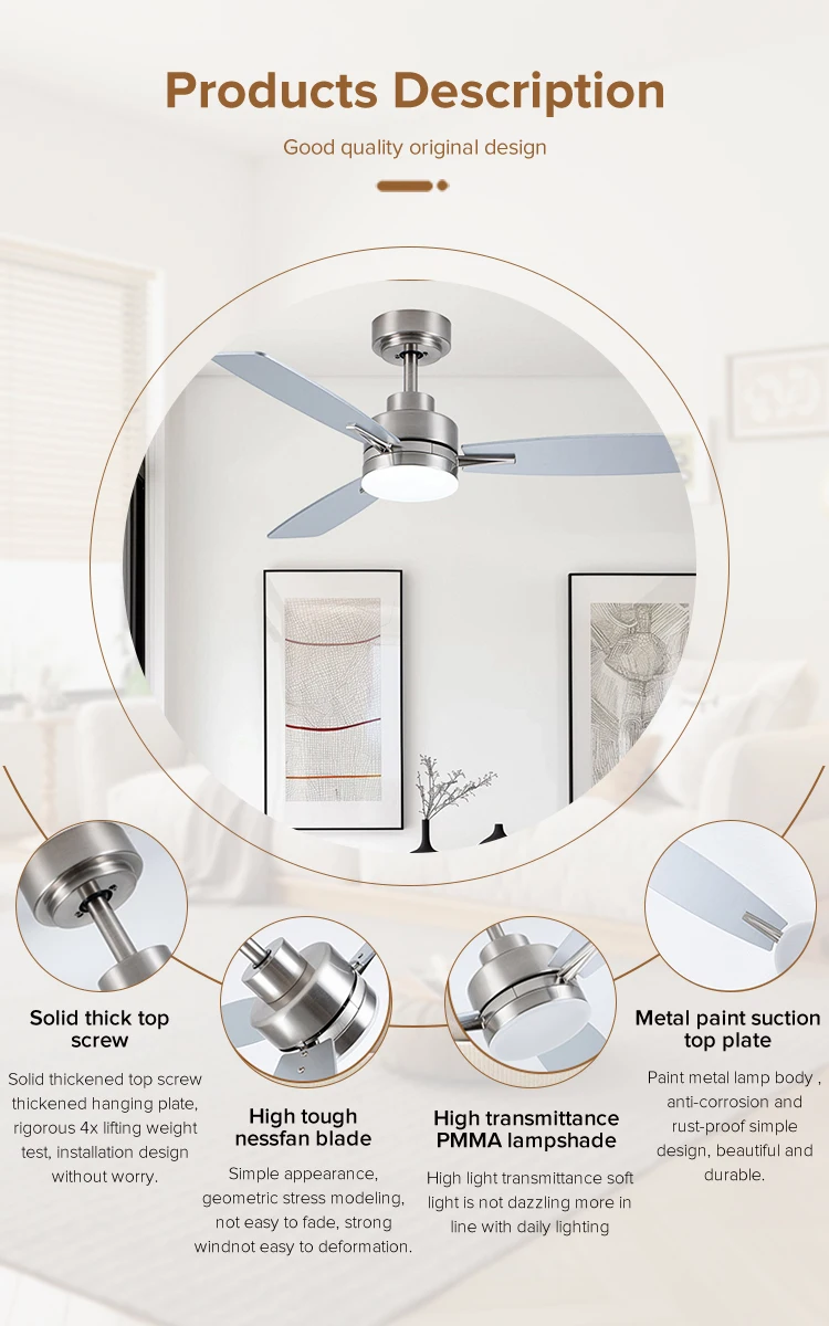 | Feature | 3 color light,low noise,6 speed,remote control,natural wind,forward/reverse,timer function,energy conservation |