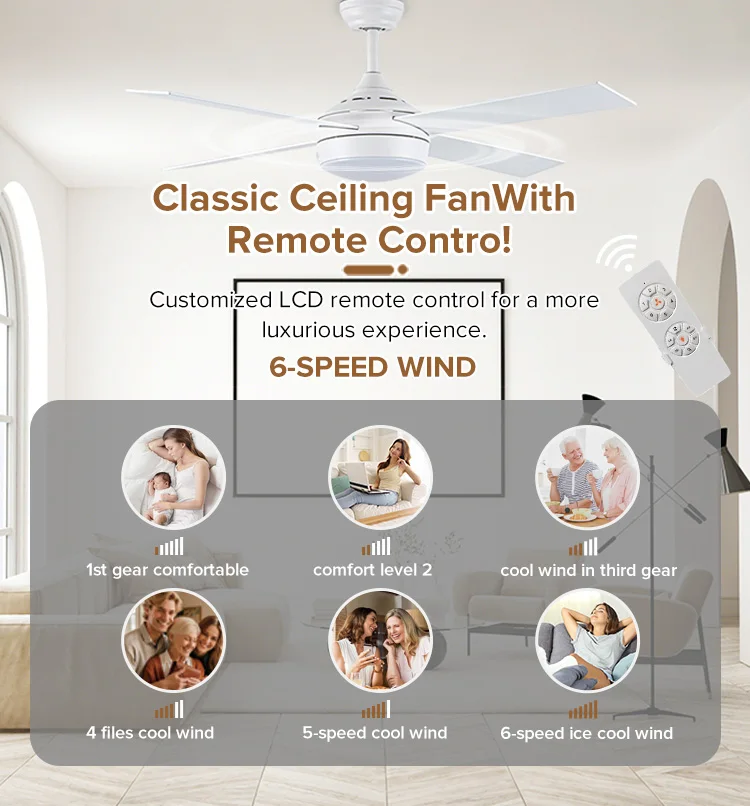 | Feature | 3 color light,low noise,6 speed,remote control,natural wind,forward/reverse,timer function,energy conservation |