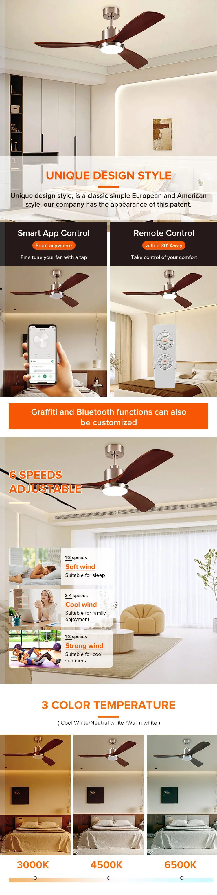 | Feature | 3 color light,low noise,6 speed,remote control,natural wind,forward/reverse,timer function,energy conservation |