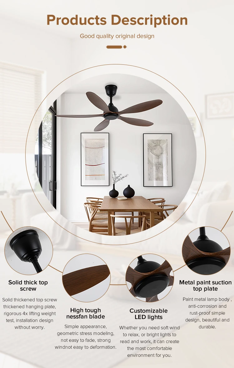 You are here: Home » Product Category » Traditional Fan Lamp » LED Ceiling Fan 5 Blades OEM Color Dimmable LED Light Ceiling Fan with Remote