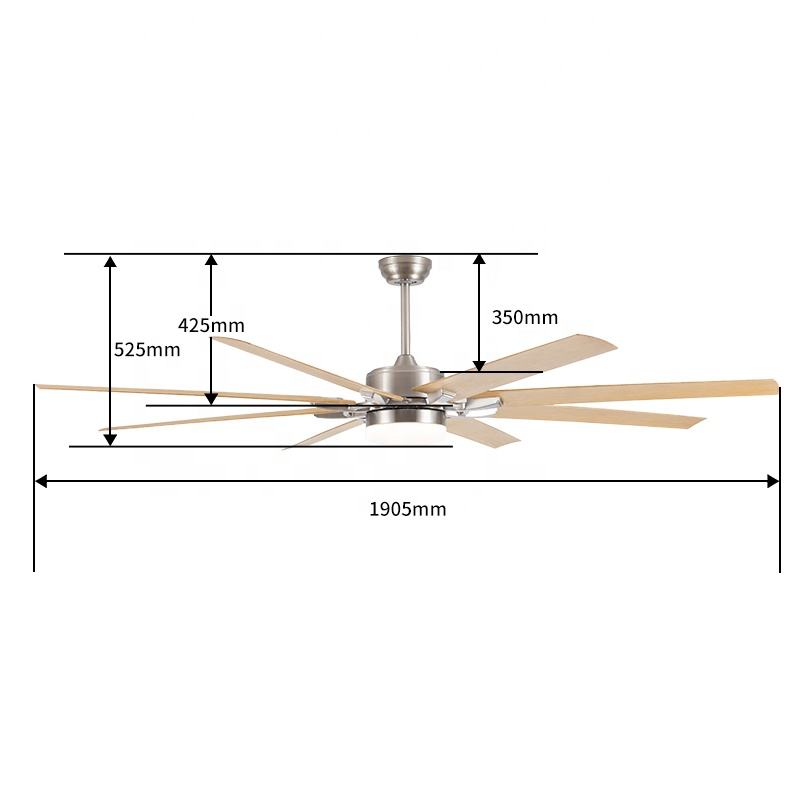 LED Fan Lamp 75 Inch Big Ceiling Fan Long Blade Chandelier Combo with Light for Hotel Household