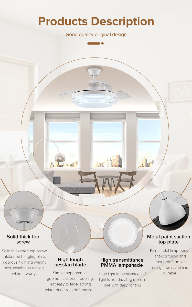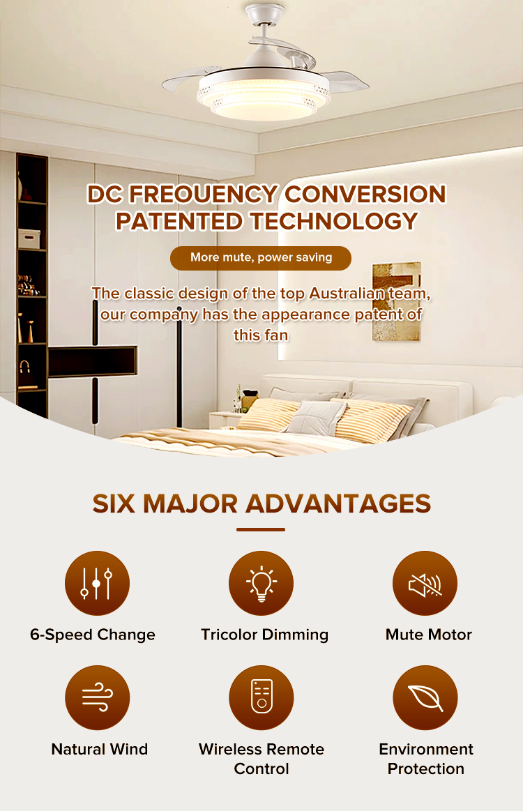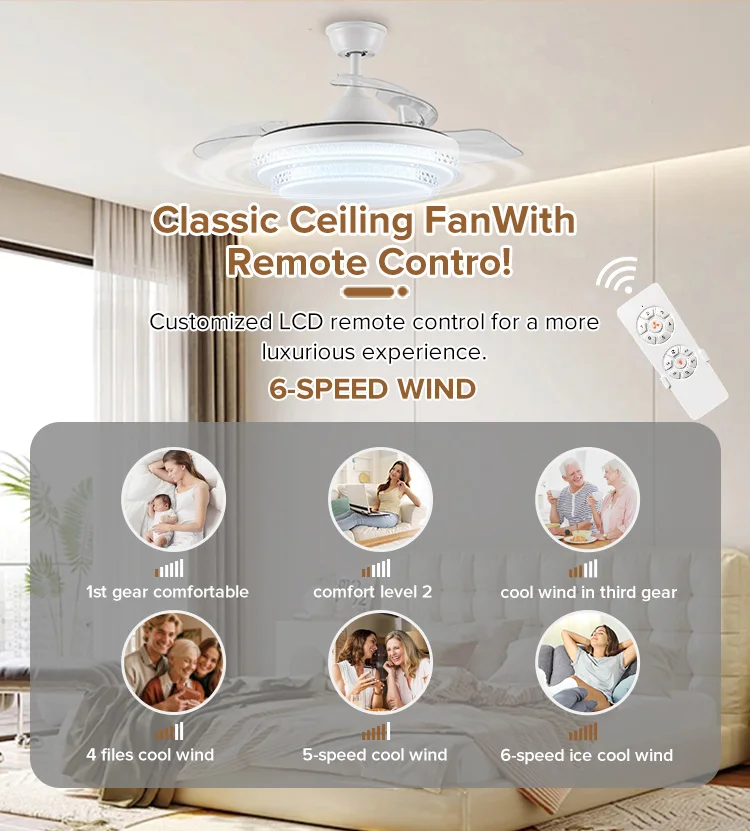 | Feature | 3 color light,low noise,6 speed,remote control,natural wind,forward/reverse,timer function,energy conservation |