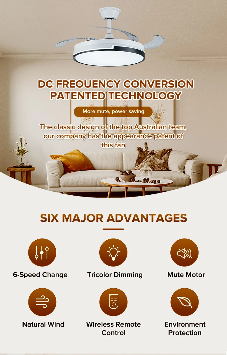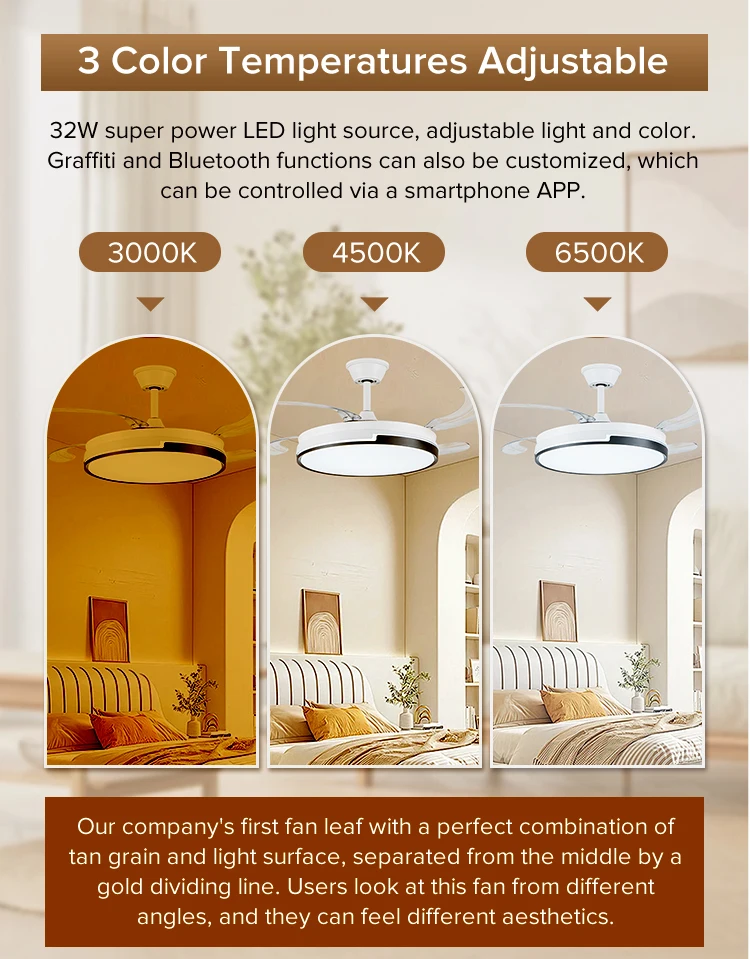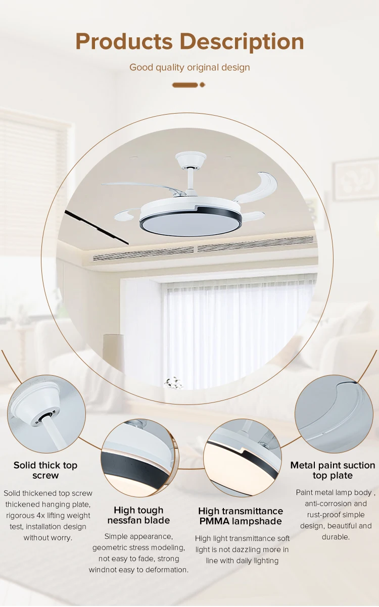 You are here: Home » Products » Fast trading Products » Modern 42-Inch Smart LED Ceiling Fan with Retractable Control & 3 Color Dimmer Switch Remote 3 Blades AC/DC Motor