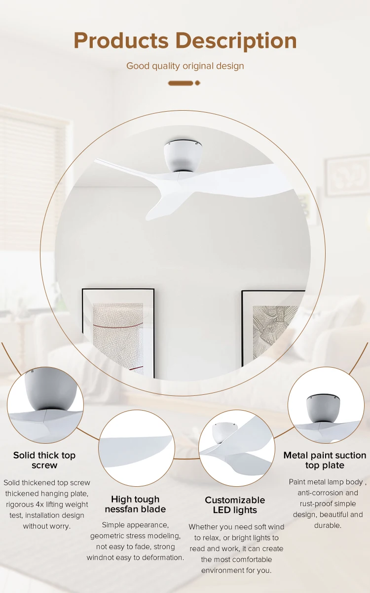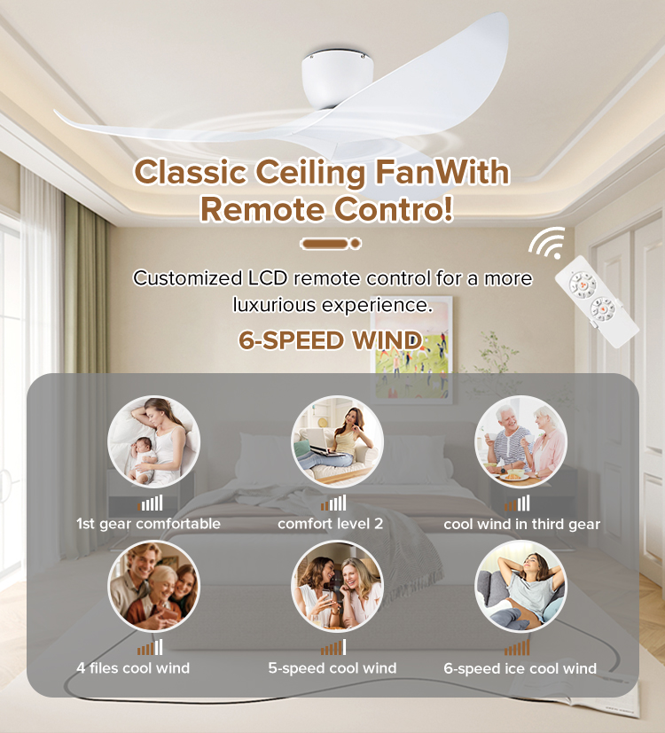 | Feature | 3 color light,low noise,6 speed,remote control,natural wind,forward/reverse,timer function,energy conservation |