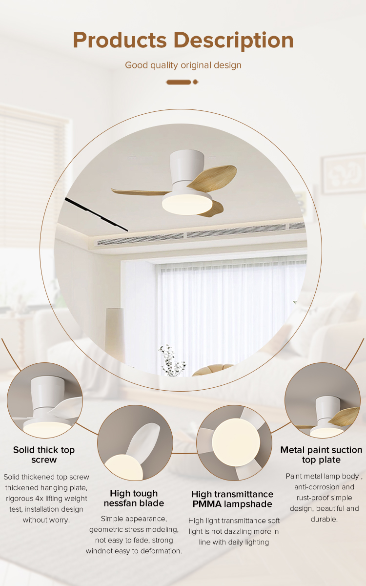You are here: Home » Product Category » Bedroom Fan Lamp » Modern Design Energy-Saving Electric Fan Household Electrical Appliance LED All-Black All-White Ceiling Fan Project Installation