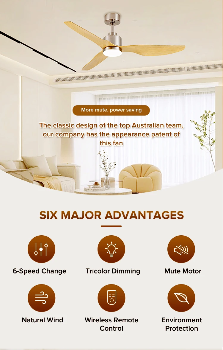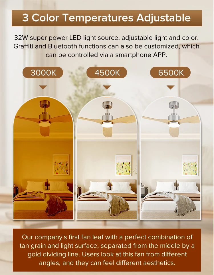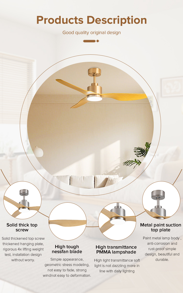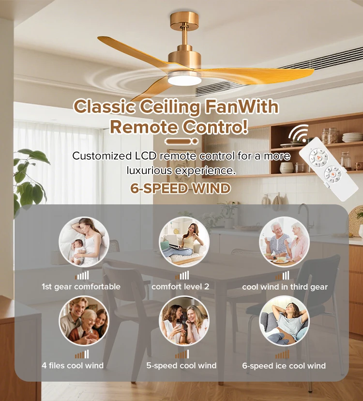 You are here: Home » Products » Fast trading Products » Modern Gold LED Ceiling Fan with 3 Solid Wood Blades and 6 Speed Remote Control Noiseless DC Motor for Living Room