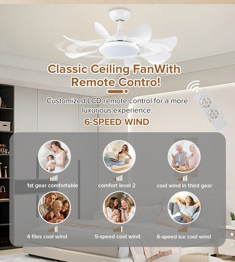 | Feature | 3 color light,low noise,6 speed,remote control,natural wind,forward/reverse,timer function,energy conservation |
