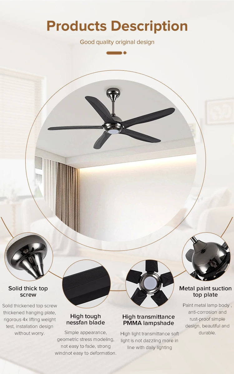 Modern Household Quiet Abs Blades Fan Lamp Luxury Led Ceiling Fan with Light Remote Cheap Price