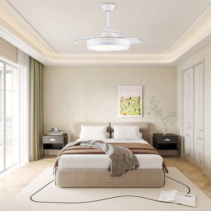 Modern Living Room White Lighting Smart Led 42inch Small Invisible Retractable Fan Lamp Fan