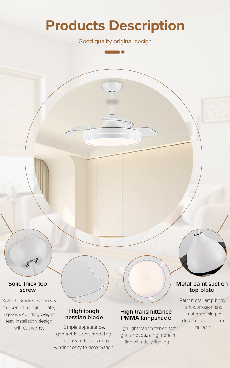 You are here: Home » Product Category » Invisible Fan Lamp » Modern Living Room White Lighting Smart Led 42inch Small Invisible Retractable Fan Lamp Fan