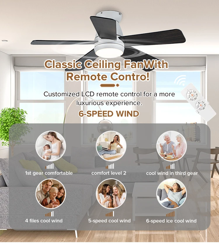 | Feature | 3 color light,low noise,6 speed,remote control,natural wind,forward/reverse,timer function,energy conservation |