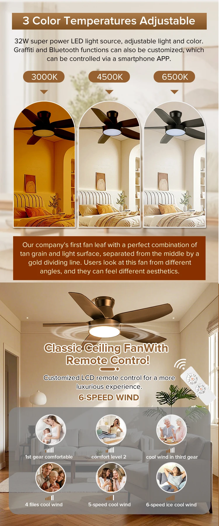 Our product portfolio is strategically tailored to address the diverse needs of different scenarios, including home improvement, commercial spaces (such as offices, restaurants, and shopping malls), and intelligent living environments. We are committed to continuously refining our products and services, aiming to become a trusted long-term partner for clients in the global fan lighting industry.