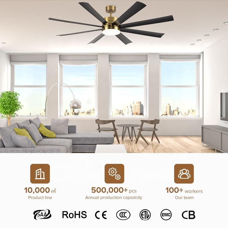 You are here: Home » Product Category » Traditional Fan Lamp » New Latest Remote Control Modern 75 Inch Large Room Black Wifi Abs Led Ceiling Fan with Light