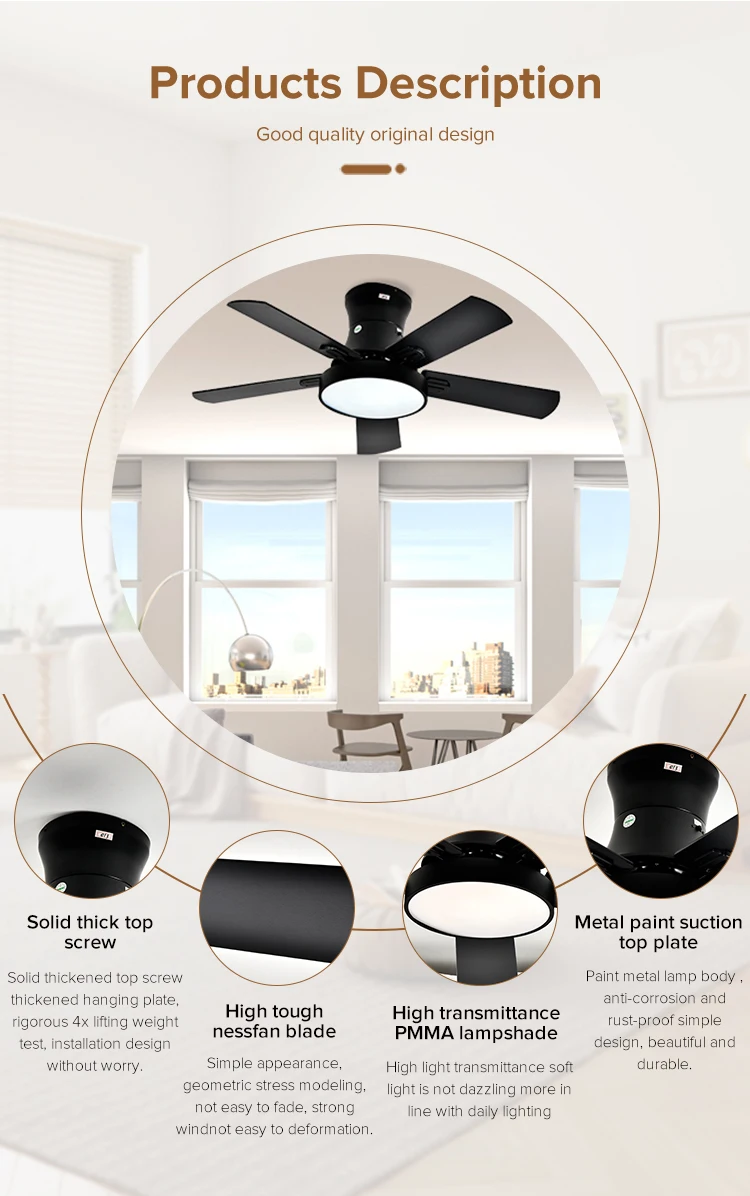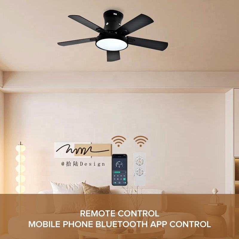 New Style Black Flush Mount 5 Blade Plywood Ceiling Fan Light with Remote Control Ceiling