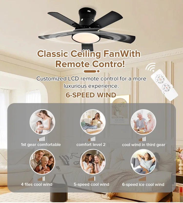 You are here: Home » Product Category » Traditional Fan Lamp » New Style Black Flush Mount 5 Blade Plywood Ceiling Fan Light with Remote Control Ceiling