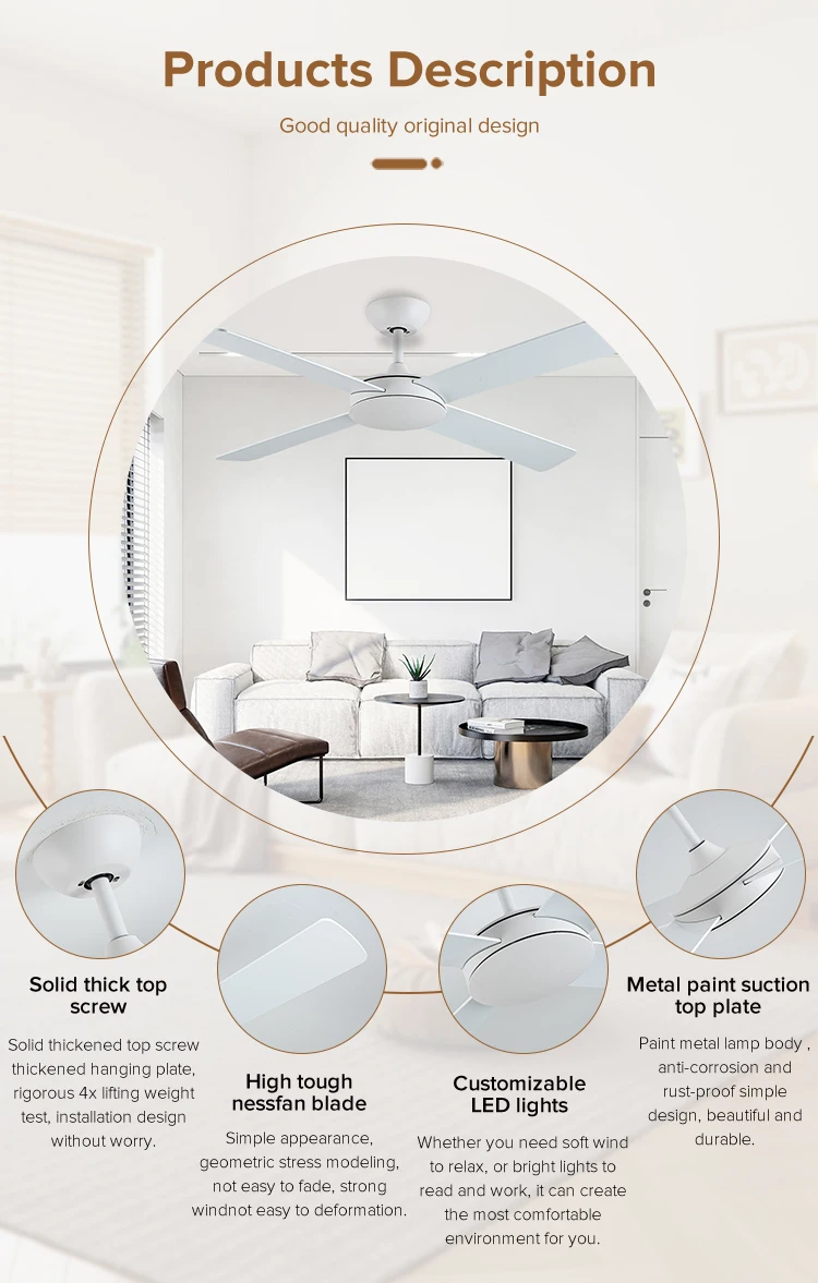 You are here: Home » Product Category » Traditional Fan Lamp » New Style Indoor White 40 Watt 4 Wing 52 Inch Ceiling Fan with Remote Control No Light