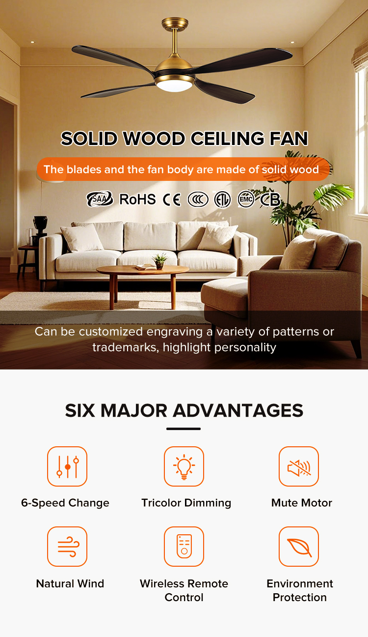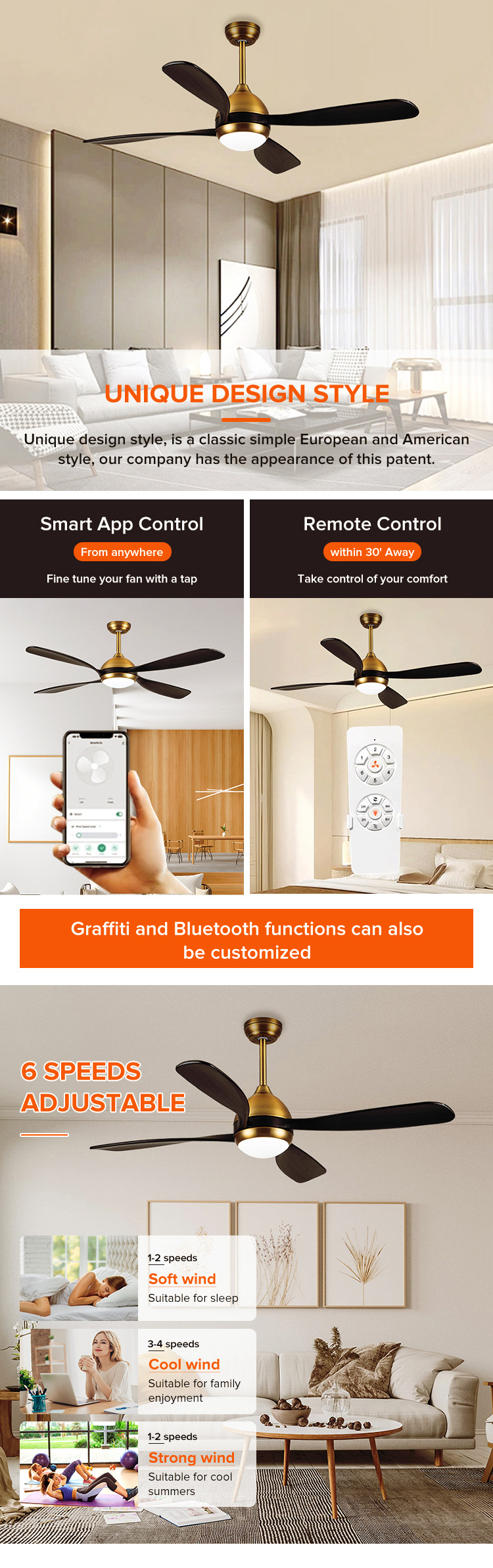 You are here: Home » Product Category » Wood Ceiling Fan » Simple Vintage Wooden Modern Smart Ceiling Fan and Light 4 Blades 52 Inch Fan with bluetooth