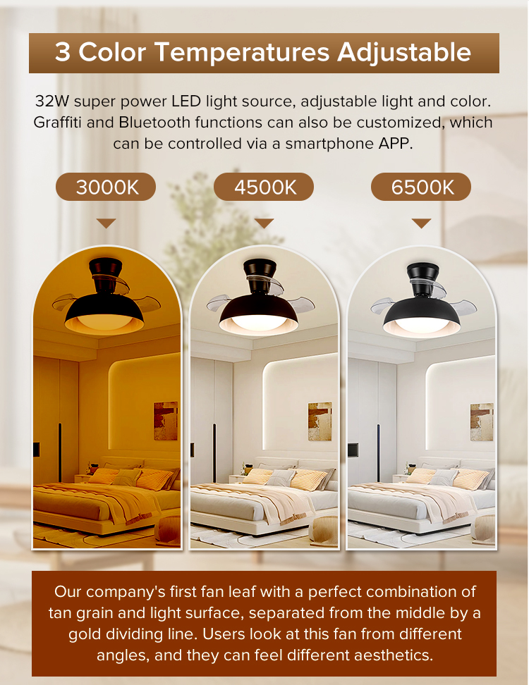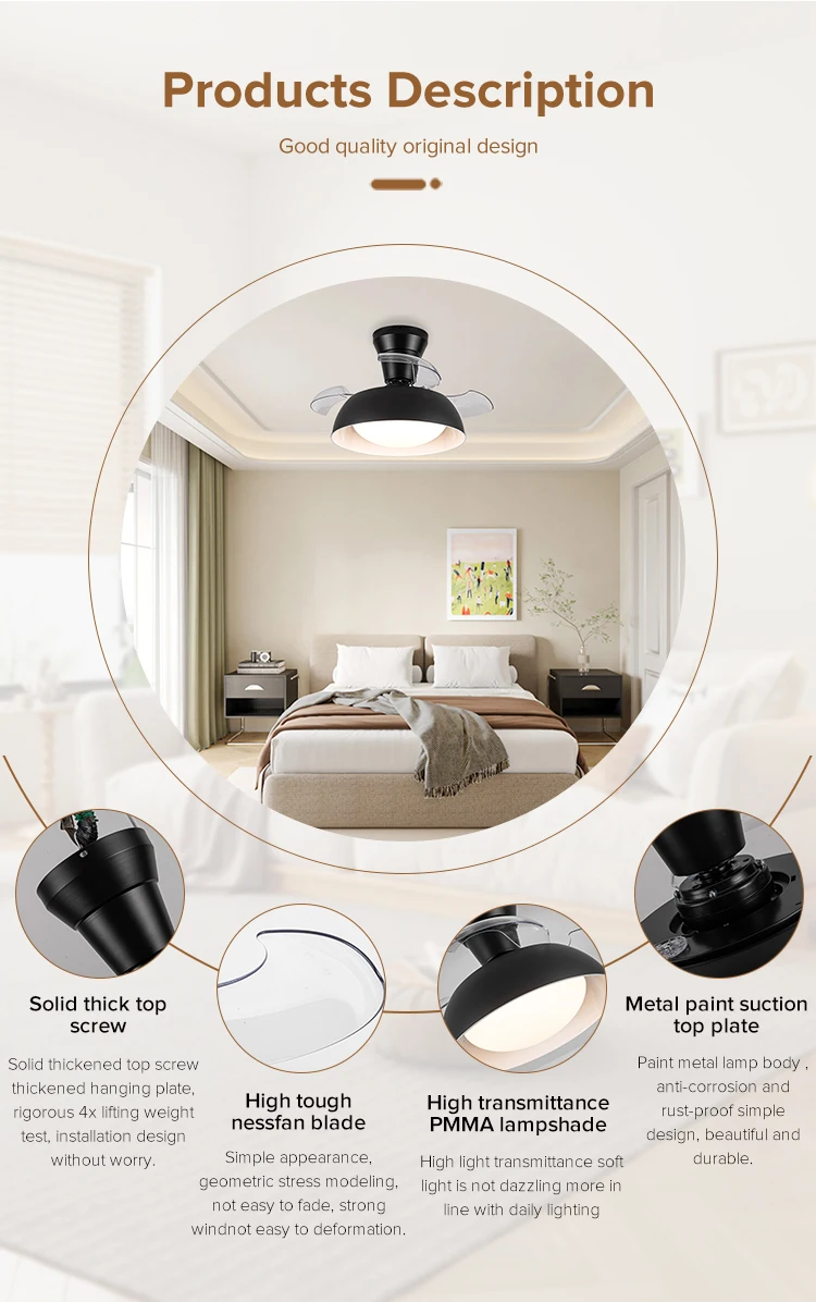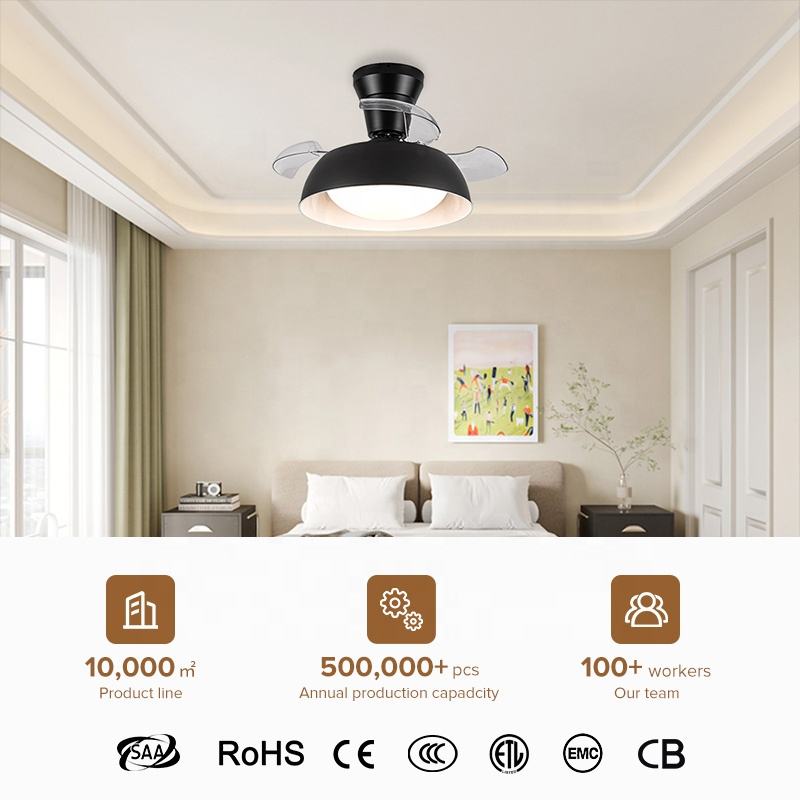 Small Room Celling Fan Restractanle Invisibility Lamp Head Type Ceiling Fan With Light Led