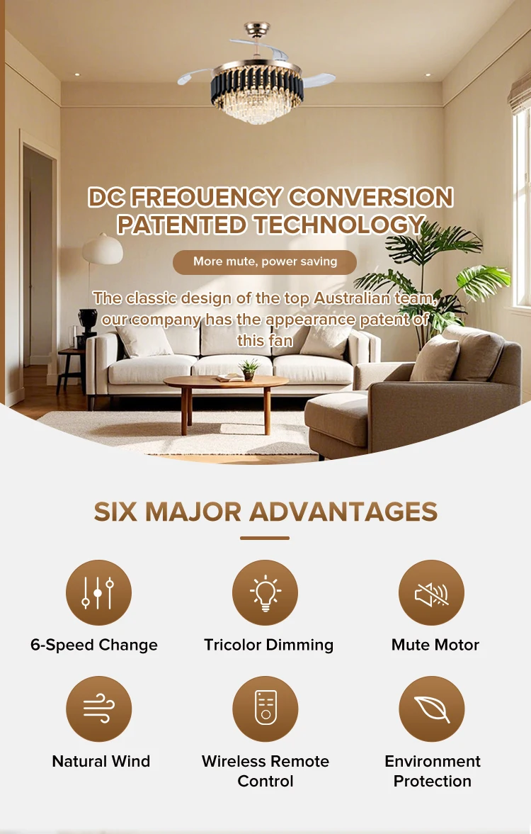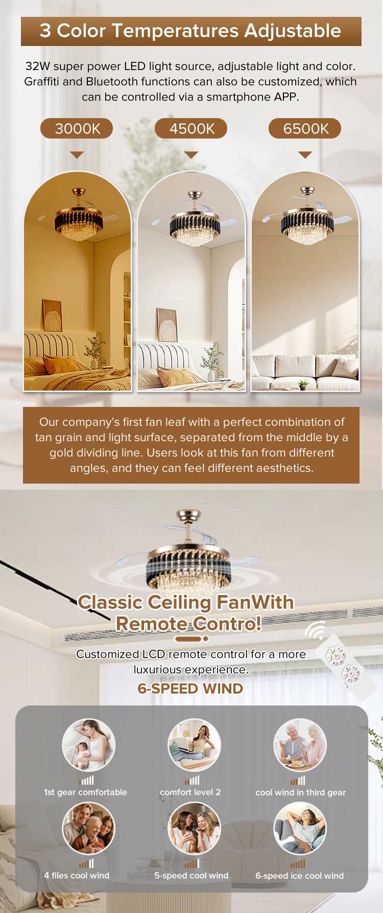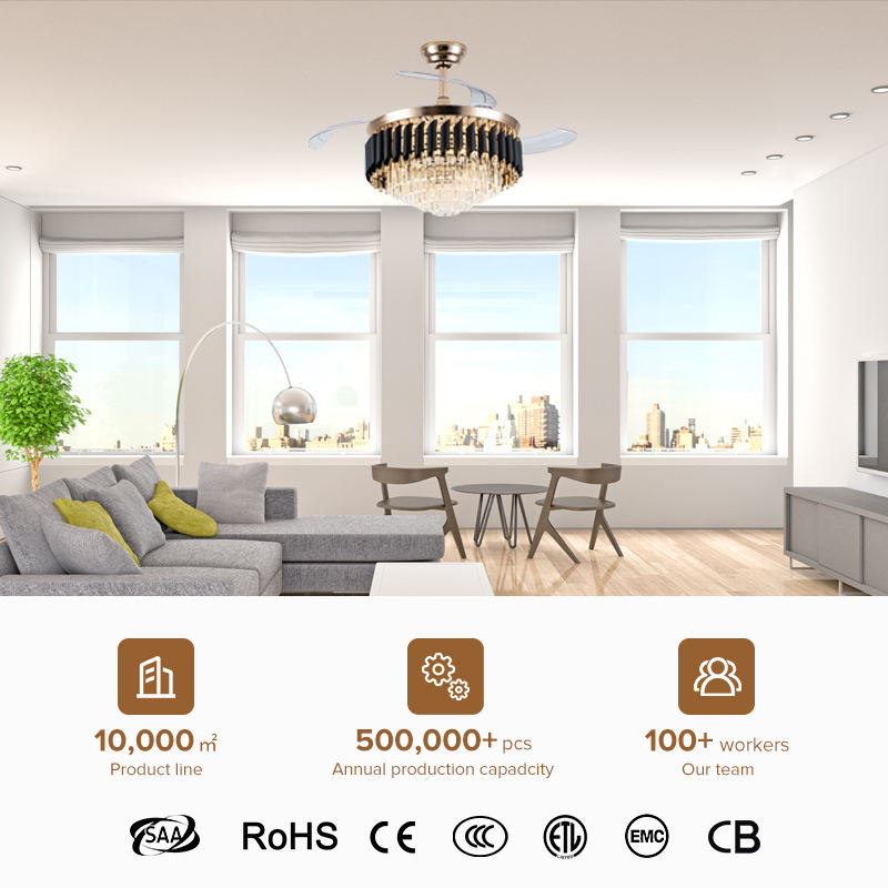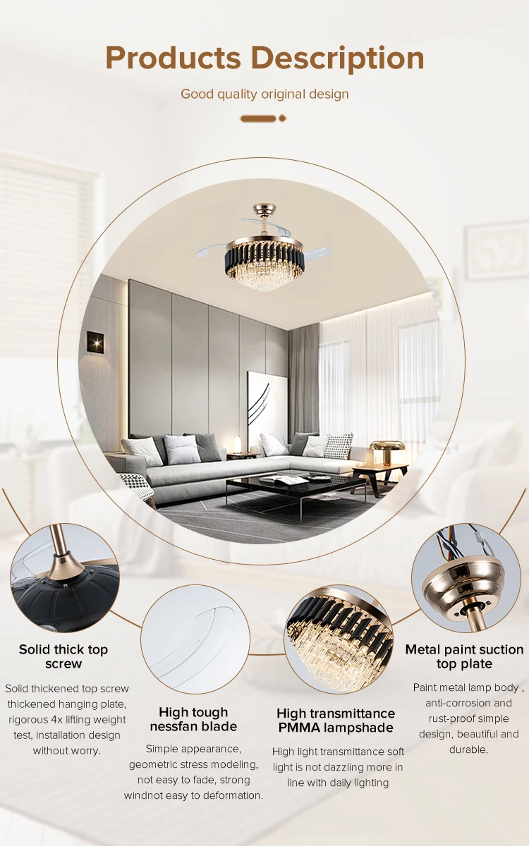 You are here: Home » Product Category » Invisible Fan Lamp » Smart Chandelier Ceiling 42 Inch Fan Light Crystal Function Lights Ceiling Fan With Light Remote Light Source 36W Motor 35W