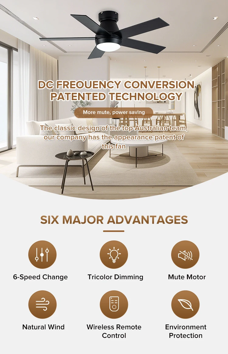 Smart Control Simple 52inche Dc Indoor Led Bldc Ceiling Fan with Lights and Remote Modern