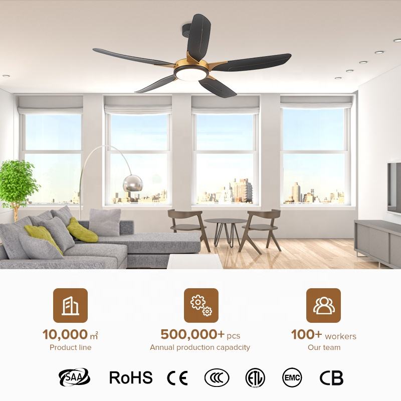 Smart Home Modern 52 Inches Ceiling Fan Led 5 Speed Ceiling Fans with Light