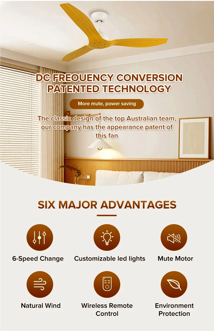 Technology Decoration Home Decorative Bedroom Smart 52 Inches Plywood Blade Dc Ceiling Fan
