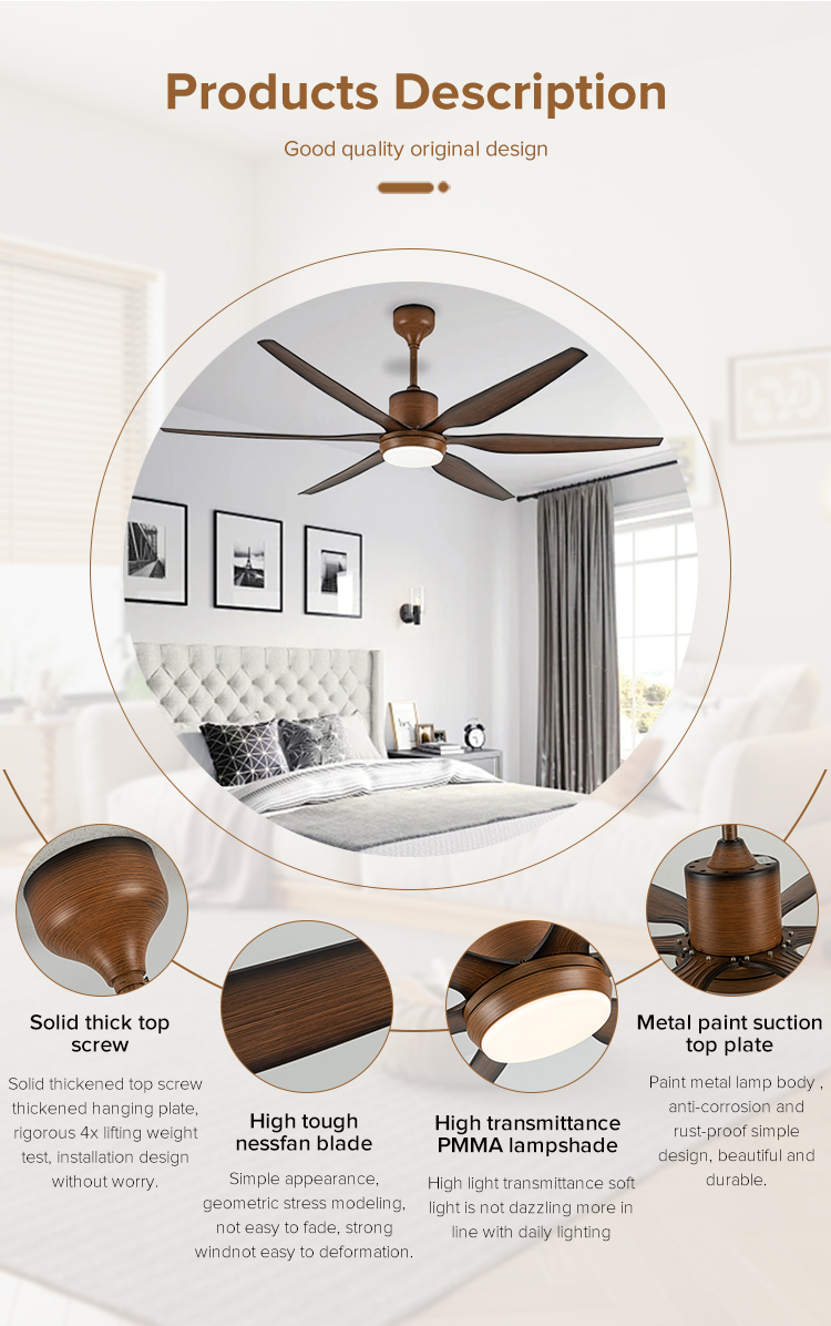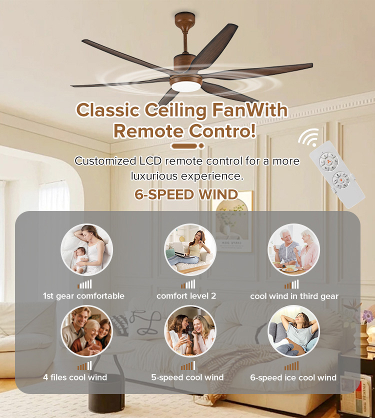 You are here: Home » Product Category » Traditional Fan Lamp » Vintage Large 66" 6 Blade Ceiling bluetooth Fan Lamp Light Fixture with Led Light and Remote